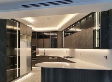 في اللمسات الذهبية للمطابخ نؤمن أن المطبخ ليس مجرد مساحة للاستخدام اليومي، بل هو قلب المنزل، ومكان يجتمع فيه الجمال مع العملية، والدقة مع الذوق الرفيع.